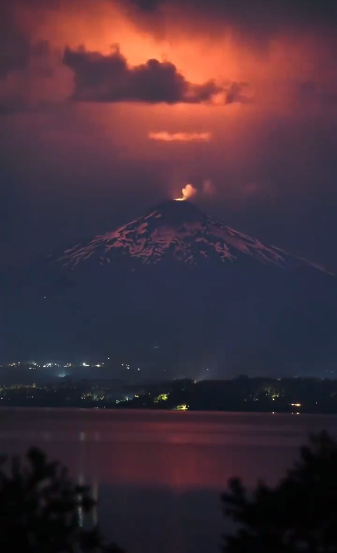 Este sábado se registró una tormenta eléctrica que iluminó el volcán Villarrica de Chile.