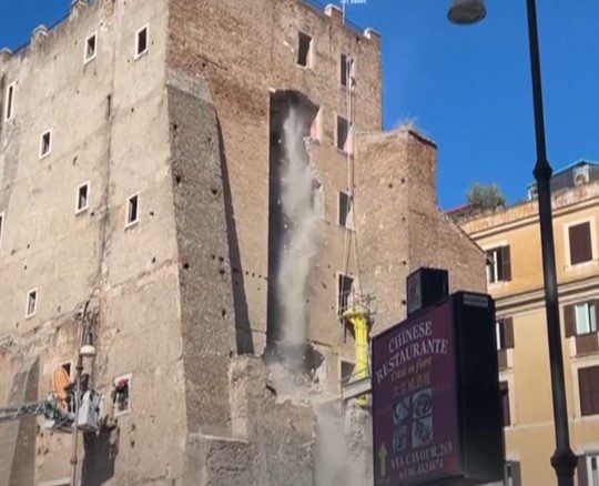 En Italia se derrumbó parte de una torre medieval en el centro de Roma.