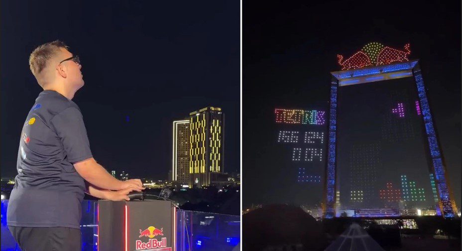 La extraordinaria partida de Tetris se realizó en el emblemático Marco de Dubái de 150 metros de altura, que se utilizó como una pantalla de juego gigante.