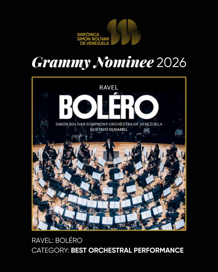 La Orquesta Sinfónica Simón Bolívar de Venezuela hace historia en la música venezolana al convertirse en la primera orquesta latinoamericana en ser nominada en la categoría Best Orchestral Performance (Mejor interpretación orquestal) y al ser nominada por primera vez en los premios de la Academia de Grabación de Estados Unidos.