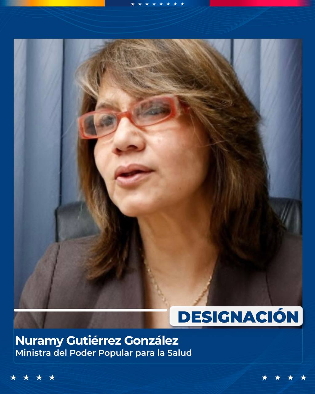 En ese sentido, anunció la designación de la doctora Nuramy Josefa Gutiérrez González, como nueva ministra del Poder Popular para la Salud.
