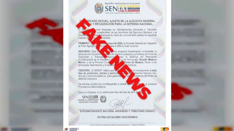 El Servicio Nacional Integrado de Administración (SENIAT) alertó al a ciudadanía sobre una información falsa que circula en plataformas digitales.